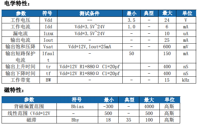 當信號被采樣時,邏輯電路判斷磁場增加還是減少,當磁場達到最大值,開始減小,并減少到一定值時,輸出變低;相反,當磁場達到最小值,開始變大,并增加到一定值時,輸出變高。