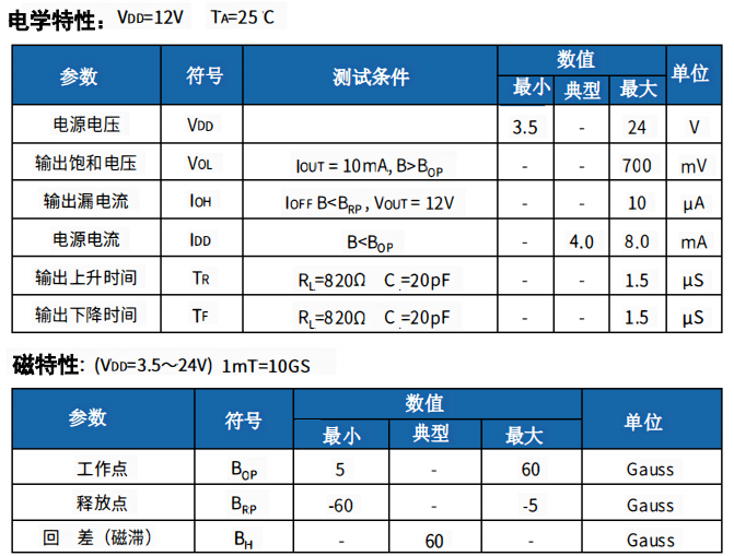 推薦型號: HS288/HS18雙極性高靈敏度霍爾開關