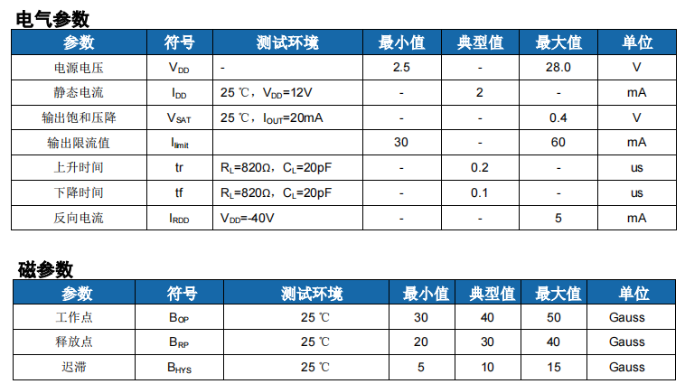 推薦型號: HS220/HS43F高靈敏度單極霍爾器件