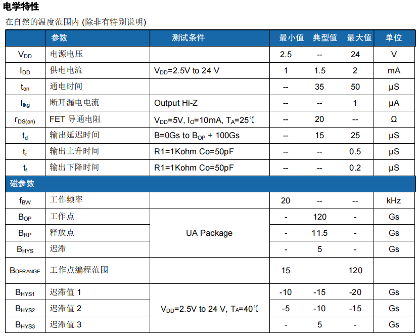 推薦型號: HS210/HS43F單極性霍爾磁性開關元件