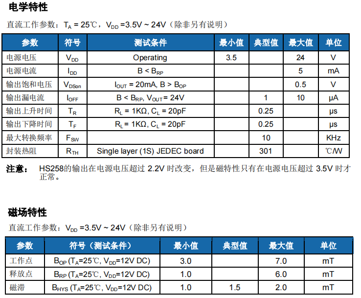 HS258是一個單極型的霍爾效應開關IC,采用先進的BiCMOS制程制造,具有優異的溫度穩定性和很高的抗機械應力性能,產品最高工作溫度可以達到150℃。