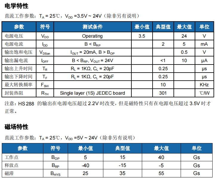 HS288是一款高磁靈敏度的霍爾效應傳感器,基于混合信號CMOS工藝。這款多功能的鎖存器適合大多數的應用需求。