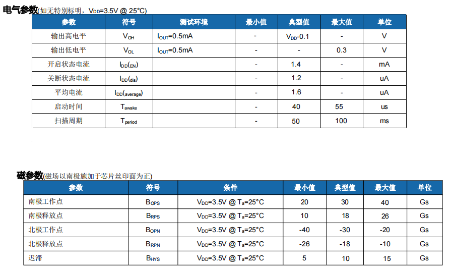 推薦型號: HS281L全極常閉型反向輸出低功耗霍爾開關