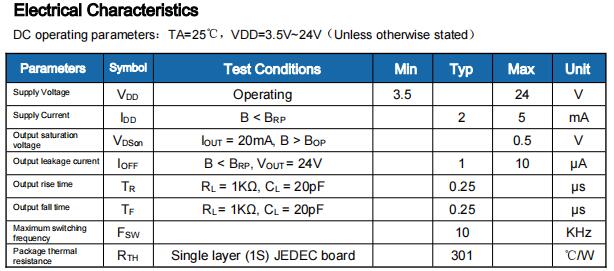 The HS45L is an omnipolar Hall-effect sensor based on mixed-signal CMOS technology. This IC uses advanced chopper stabilization techniques to provide accurate and stable magnetic switch points.