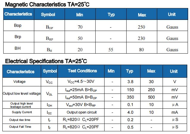 These requirements. It is recommended to use HS3144E high-sensitivity unipolar Hall devices.