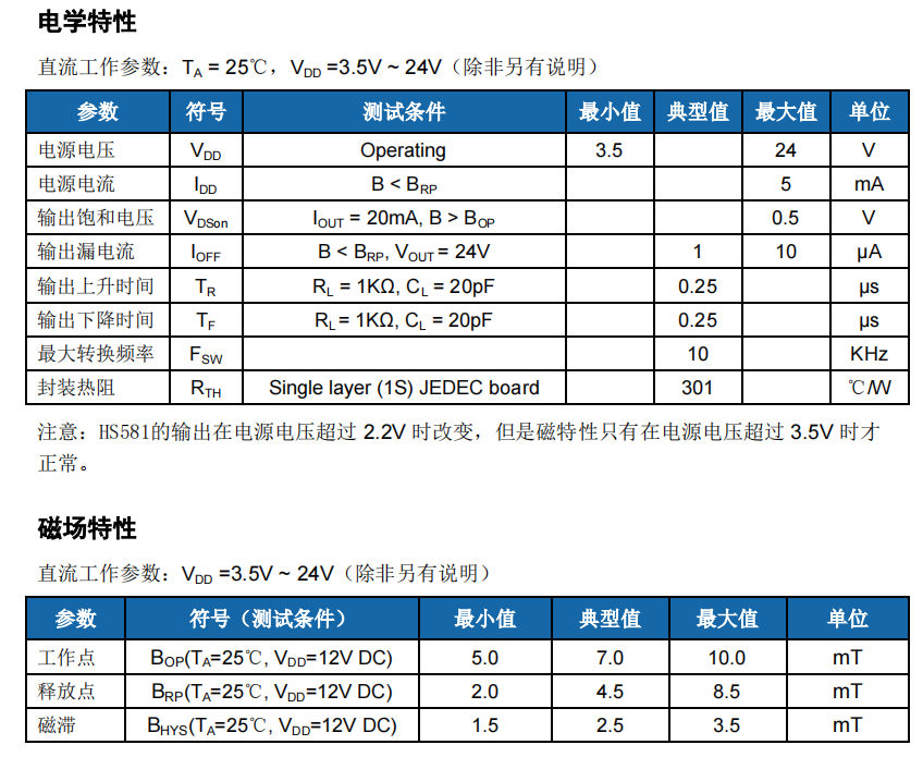 推薦型號:HS581高靈敏度單極霍爾器件