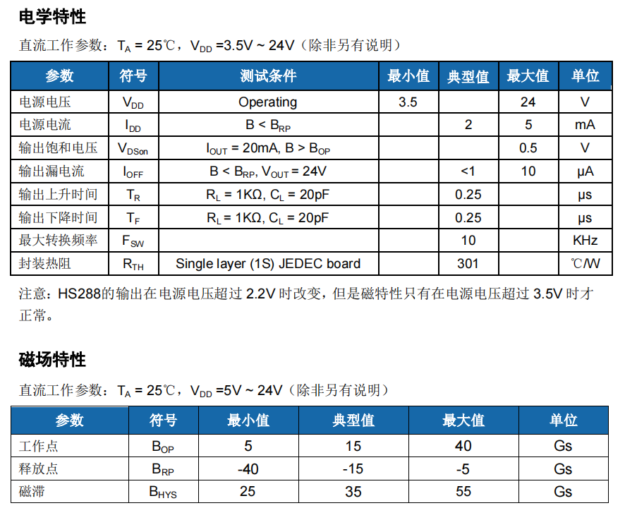推薦型號:HS288雙極鎖存型高靈敏度霍爾元件