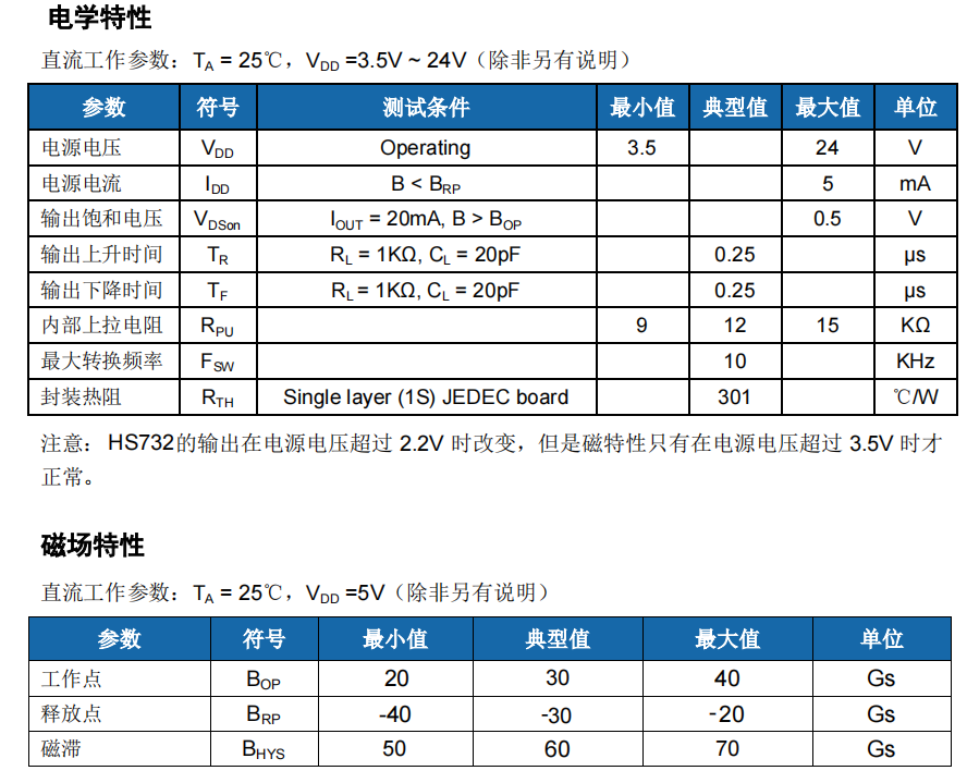 HS732是一款基于混合信號CMOS技術的雙極鎖存型霍爾效應傳感器,器件內部集成了電壓調節器、帶動態偏置補償系統的霍爾傳感器、施密特觸發器和一個開漏極輸出驅動,這些都在個開漏極輸出驅動,這些都在一個封裝里。