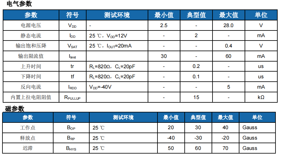 推薦型號:HS261雙極鎖存型霍爾器件
